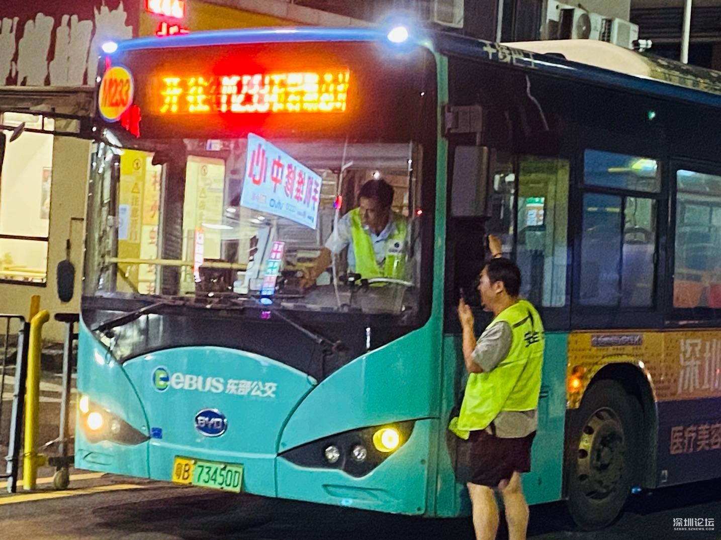 图2/3:可能是公交公司的人员指引司机停车、并与司机交谈