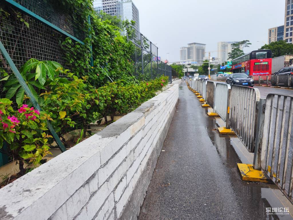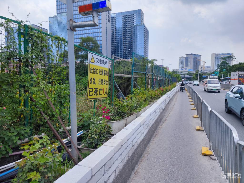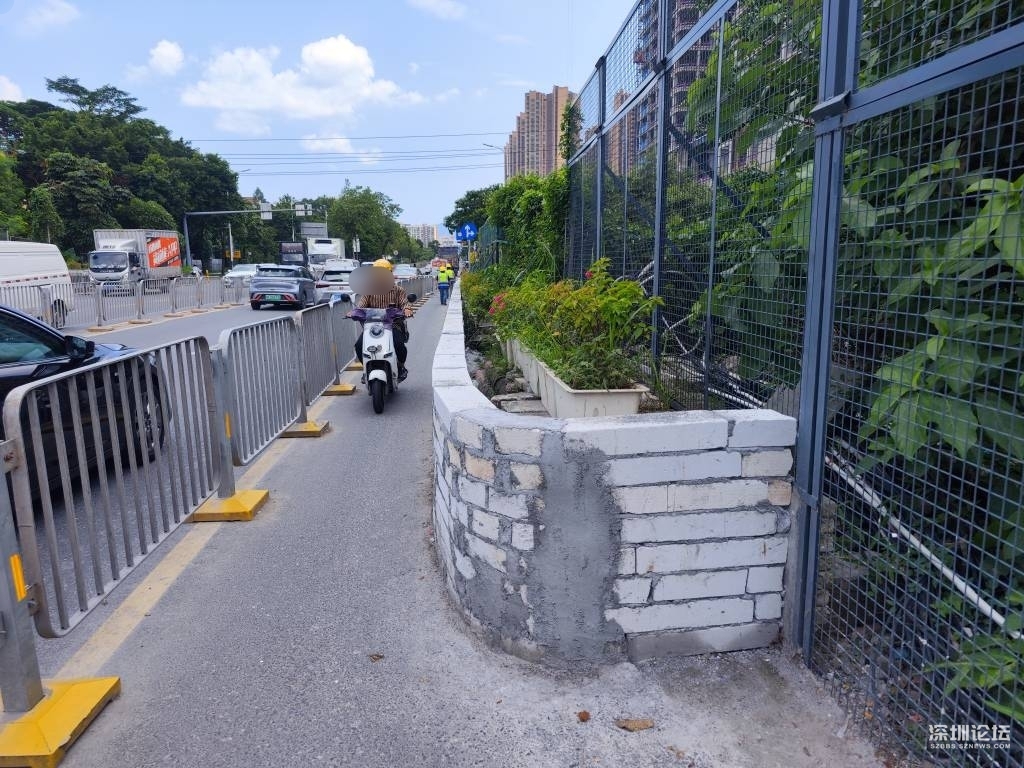 而随着市3院搬迁至此,14号线地铁开通及近年周边科技园区开业以后,人-非机动车-机动车混行情况日益严重,而近期该路段实施了相关绿化升级工作更是加剧了相关问题。