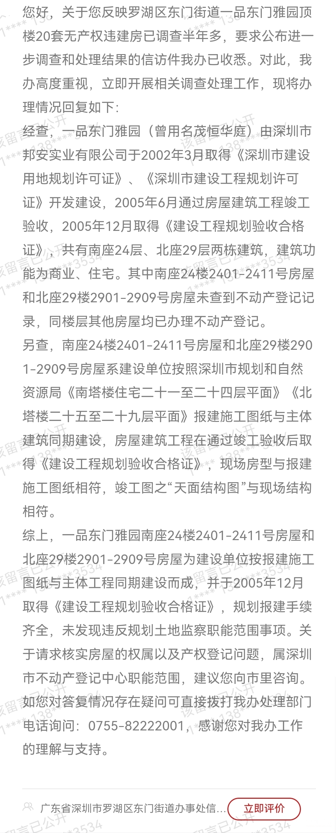 @深圳市住房和建设局@深圳市规划和自然资源局!罗湖区一品东门雅园 南座24楼2401-2411号房屋和北座29楼2901-2909号房屋和项目主体一起建成,为何至今一直未取得房产证?这些房屋开发商是以什么用途功能报建的?开发商报建流程是否合规?相关部门的审批流程是否合规?为何小区查询到的设计和竣工图纸是没有这些房屋的?