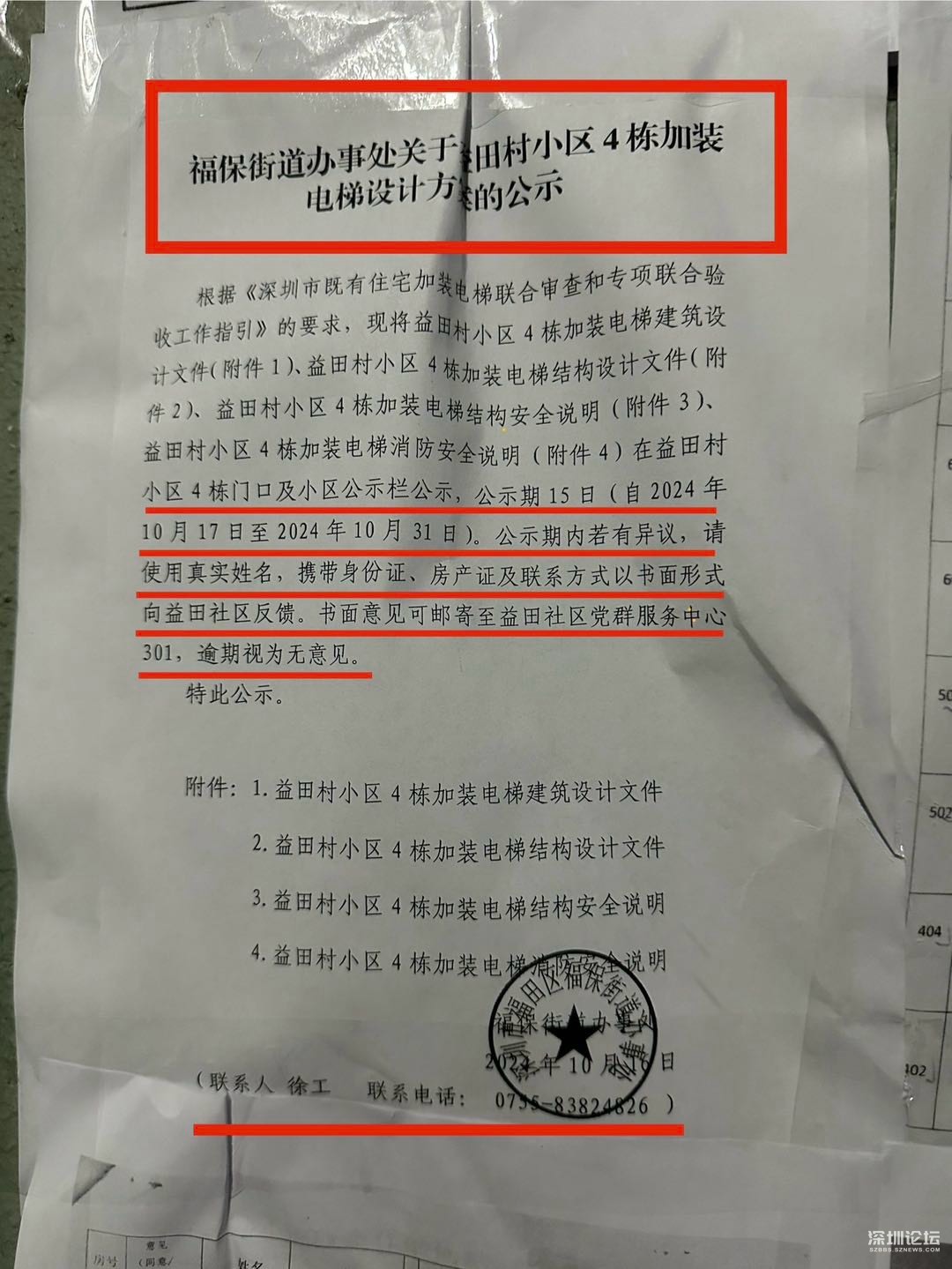 福田区福保街道办事处 发表于 2024-10-23 09:20 网友您好,您反映的问题我们已收悉,现将有关情况答复如下: 一是益田村4栋加装电梯事项已有20户业主签署 ...
