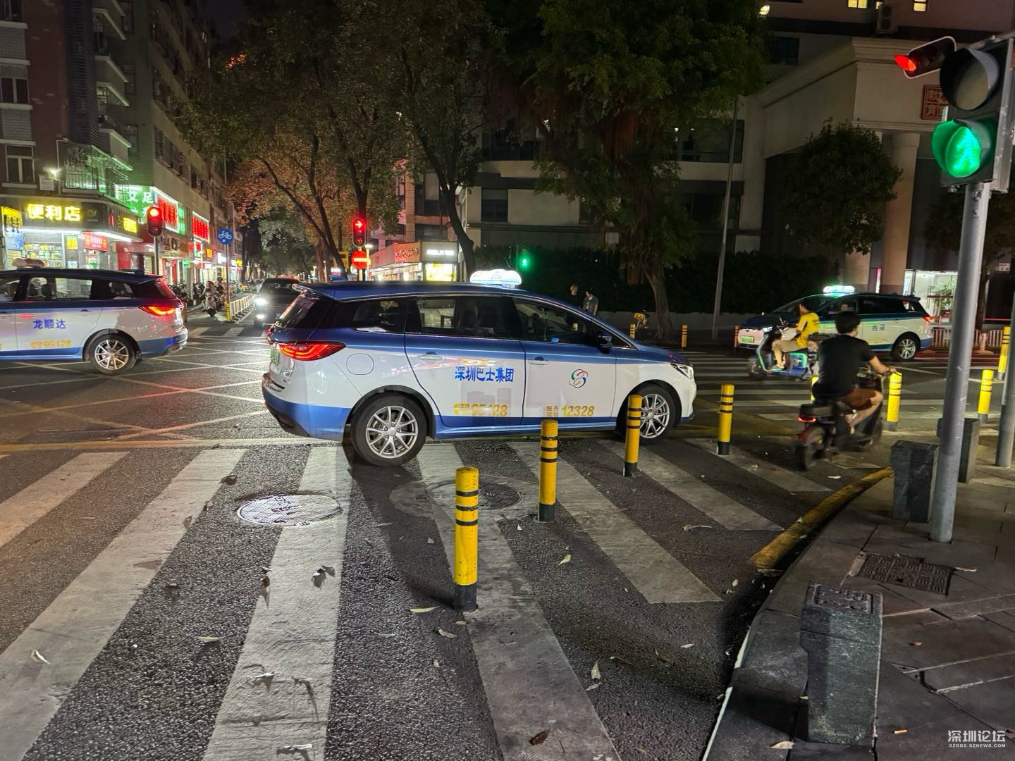 深圳福田区沙头街道新洲九街与新洲一街交叉口,之前因为防止的士停靠等客,安装了隔离桩。然而装了桩后不但没改善,的士反而往路口中心继续停靠,严重影响本就拥堵的新洲九街,再加上嘉葆润小区右拐往新洲路本就不是圆饼灯,靠成日常严重拥堵。