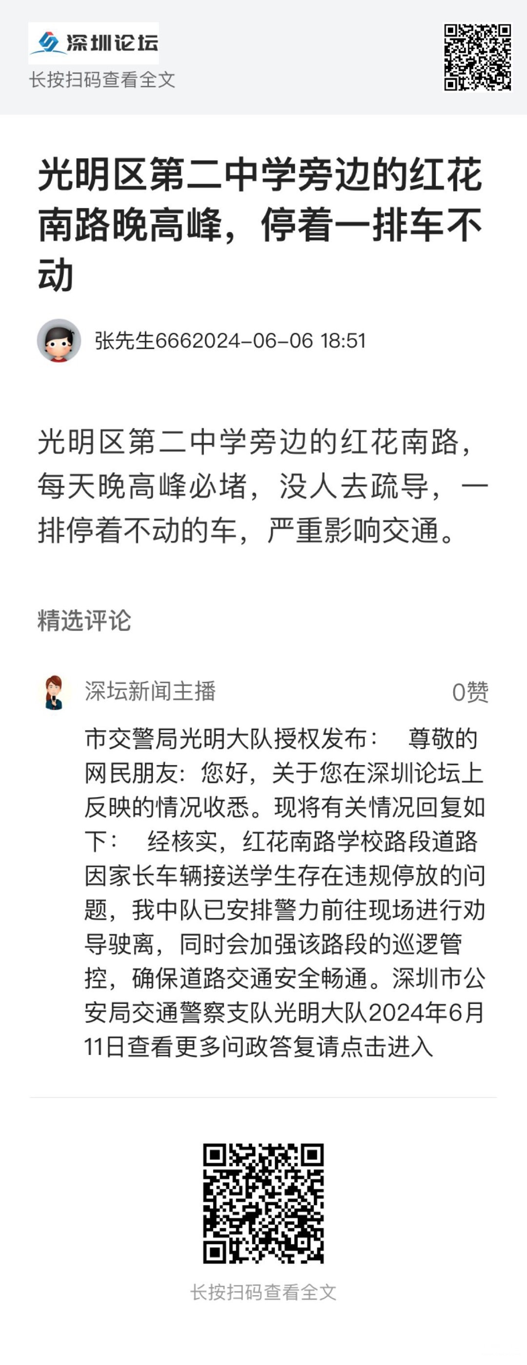 第二次投诉,光明区第二中学旁边红花南路,晚高峰,违停阻挡正常行驶,