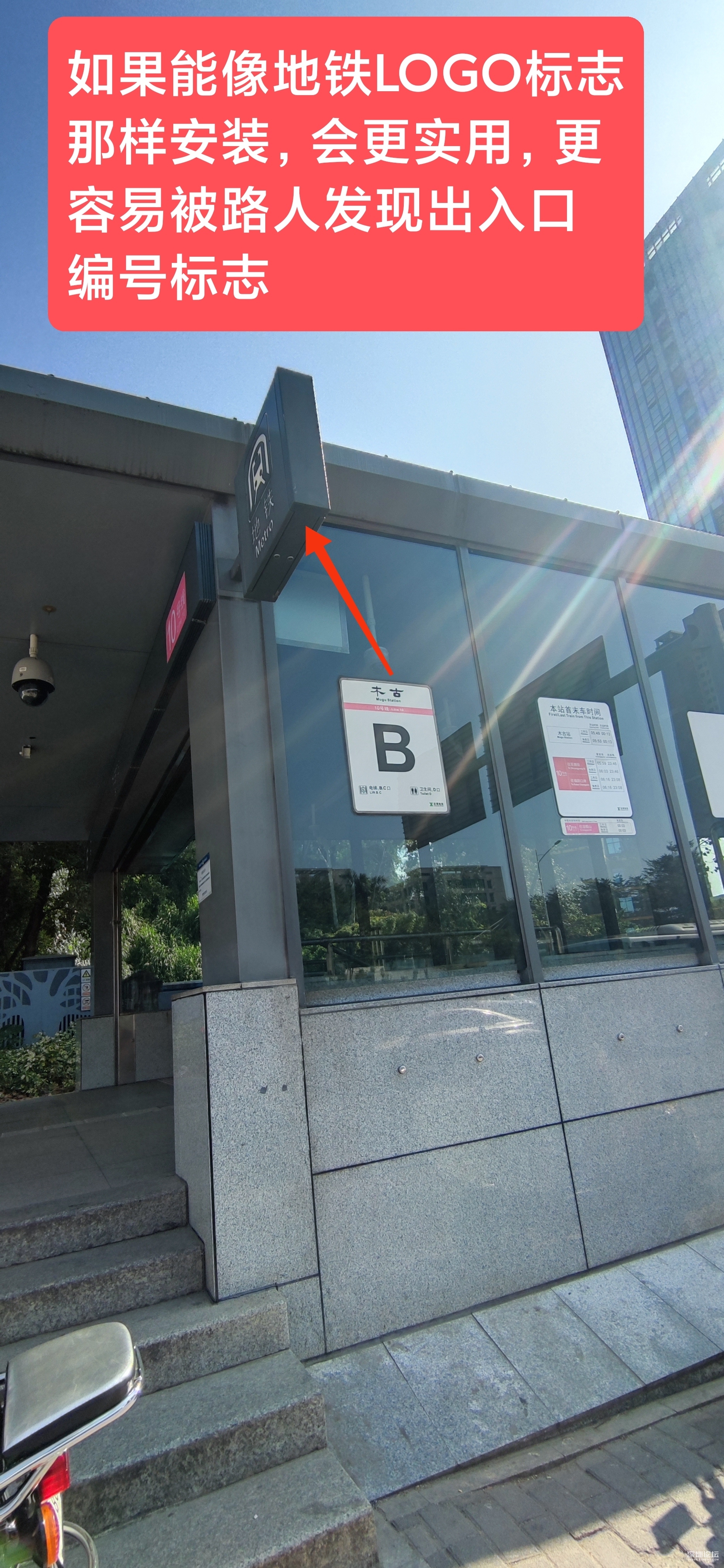 深圳地铁车站外面进出口标志(例如A口、B口、C口),这些标志贴的位置的太隐蔽不明显了,很难发现,每次去车站必须走到入口才能看到是地铁哪个口进行定位打车,这样太不方便了,太耽误时间了,有时出地铁打车定位也看不到是哪个口标志,地铁站出入口多,距离远,定位会错误,需要手动进行选择上车地点,出入口标志代号牌为什么做的那么隐蔽和贴的位置隐藏,根本看不到是哪个出入口,别人告诉某个人去地铁哪个口,实在太难寻找了,必须要走到每个入口跟前才能看到入口编号标志,真是太搞笑了。这样设计的理由是什么,不能像路牌一样做的明显一点,和安装在出入口明显的位置,或者安装高一点的位置,让路人很远的地方就能看到是地铁哪个出入口,方便找人和打车定位。