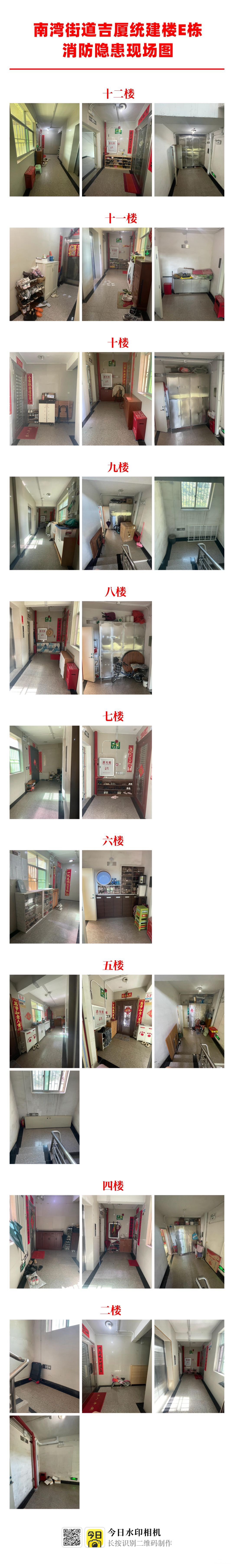 龙岗区南湾街道吉厦统建楼E栋为历史违法建筑,该栋共计13层(含天面层)。此栋楼在每层楼道内均存在不同程度的杂物堆放现象,且持续时间不少于6年,而吉厦社区工作站就在该小区旁边,其工作人员对该栋存在的消防隐患睁只眼闭只眼一直不解决。怠于履职不作为!