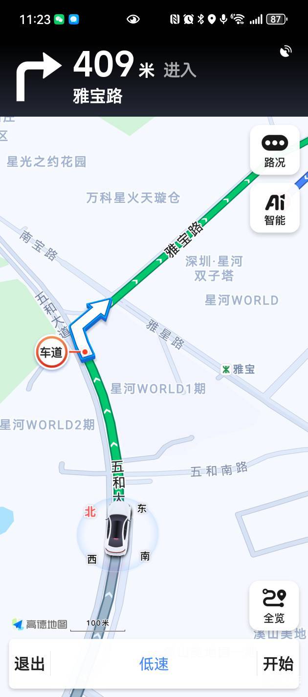 五和大道与五和南路交汇处,由南往北方向至星河购物中心人行天桥路段,中间绿化带处,有许多树枝,没有修剪,树枝生长至机动车道上,经过时看到也不好看,已经好久没修剪。很乱很乱,由于车速快,也不方便停车,所以就没有图片,只有导航图片。这一段路是坂田街道与龙华民治街道交界处,相关人员告知我这里是龙华区民治街道城管办管理范围,请相关部门处理!(附上导航图片)