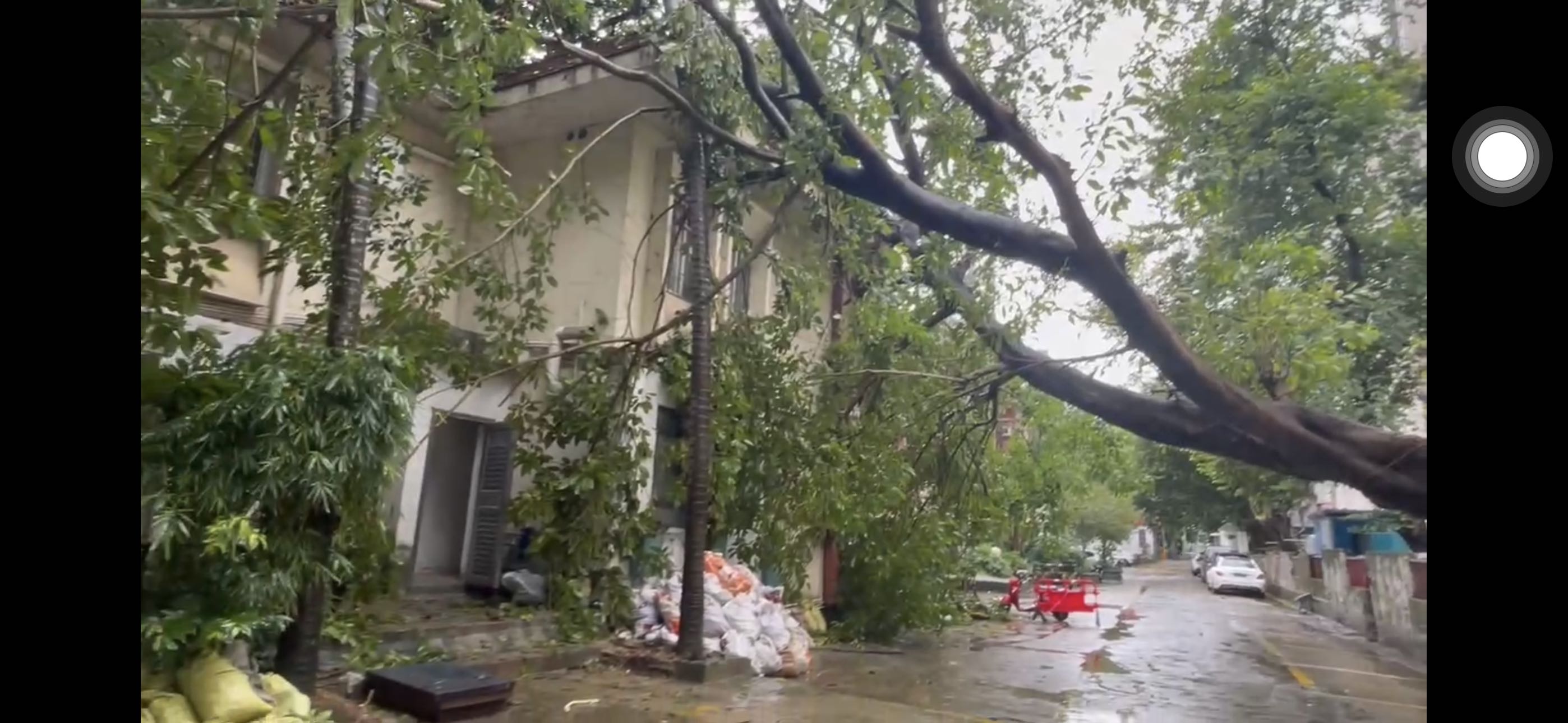 下面第一张照片是23年小区旁的一颗树在下雨时(非恶劣天气状况)倒了,砸坏了诗宁别墅4栋的公共楼梯部分,幸好没有砸到住户家。街道后续帮恢复了楼道封窗重建工作。