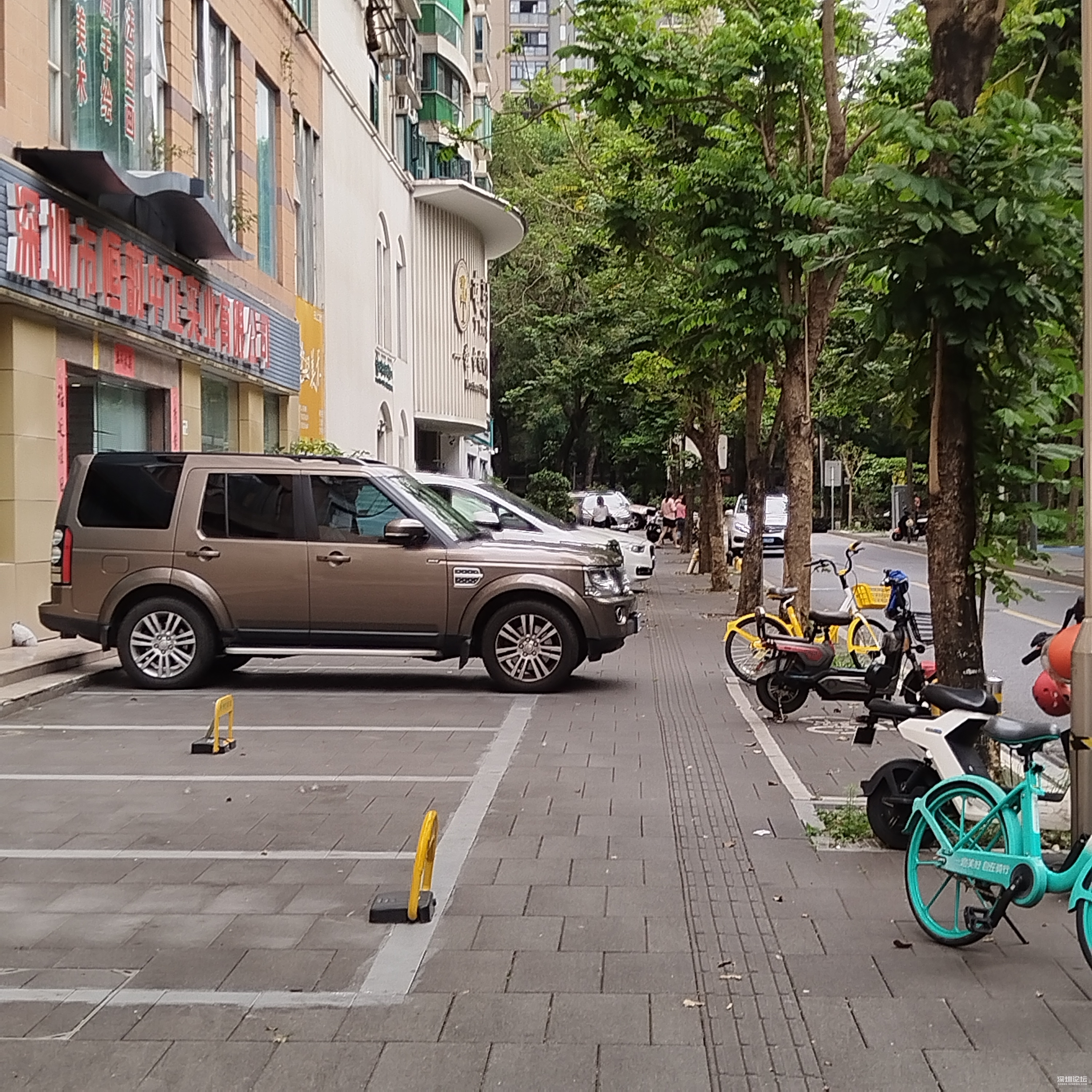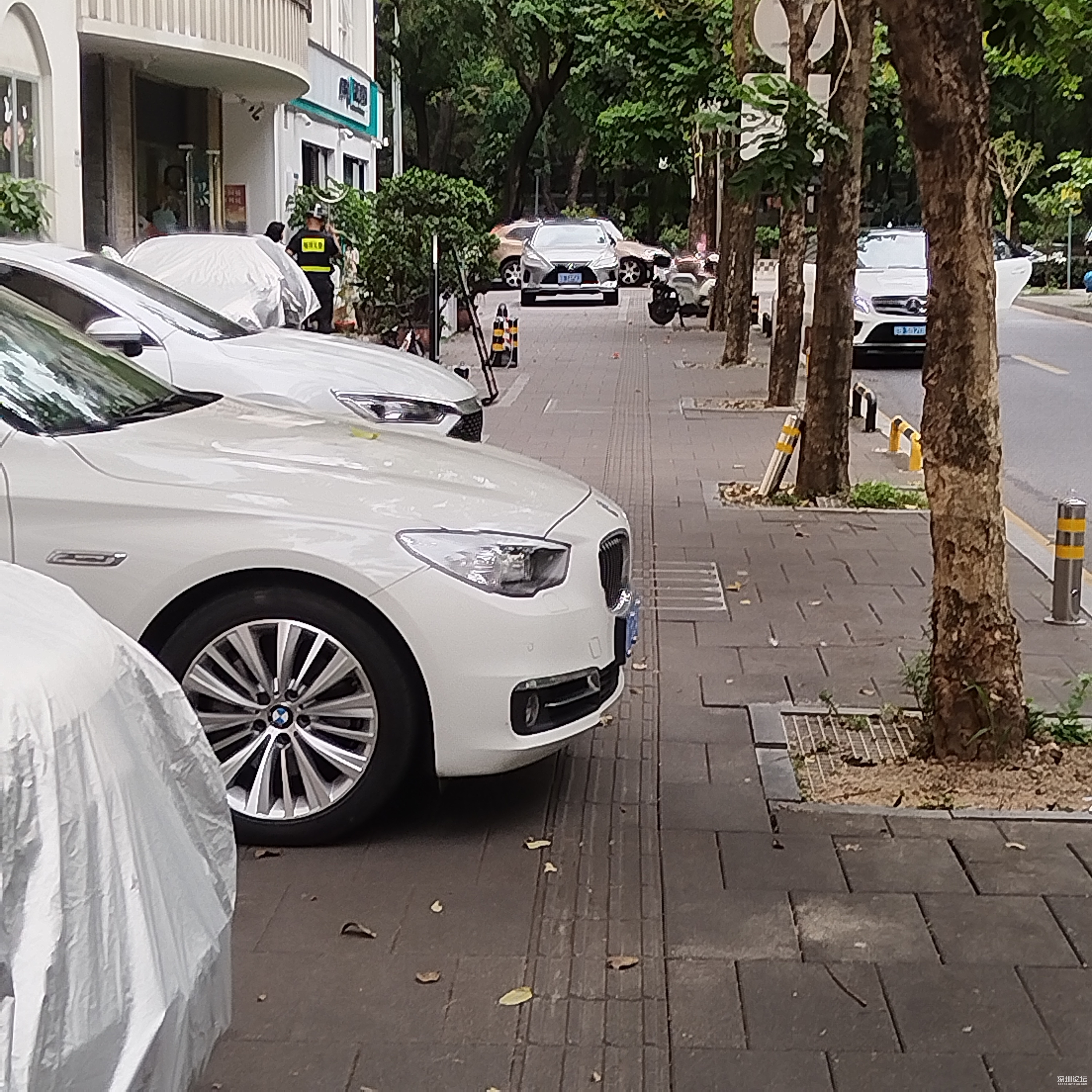 在景田北二街有个奇怪的事,在福伴超市门口的人行道被绿化挡住(图5),明显是小区不想让行人通过,仔细观察没有盲人道,估计这条路是小区规划内的,不是市政道路。同样在这条路的西边,农行门口,有盲人道(图2、图3、图4),但是被各单位挡住,农行甚至还有保安把守,类似他们内部停车场,从盲人道来分析,农行门口这条道应该属于市政道路。