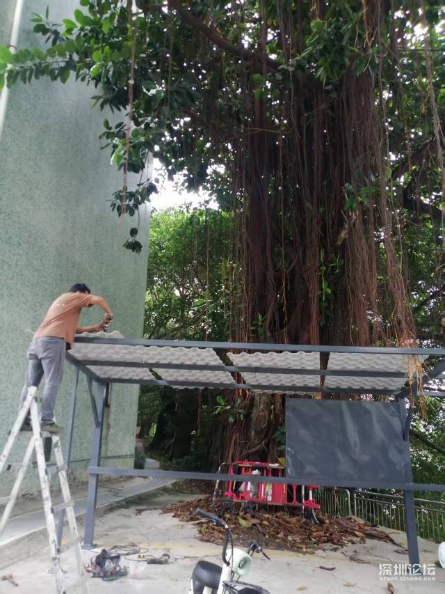 向龙华消防举报投诉:物业公司2025年5月27日未经滢水山庄业主大会同意,也未经消防评测同意,擅自在小区内树林公共区域违法搭建电动自行车充电棚,该充电棚就位于紧挨住宅楼的树林下,有严重的消防危险。强烈要求龙华消防部门处罚物业公司违法行为,并立刻处置清除该违建充电棚,恢复原貌。