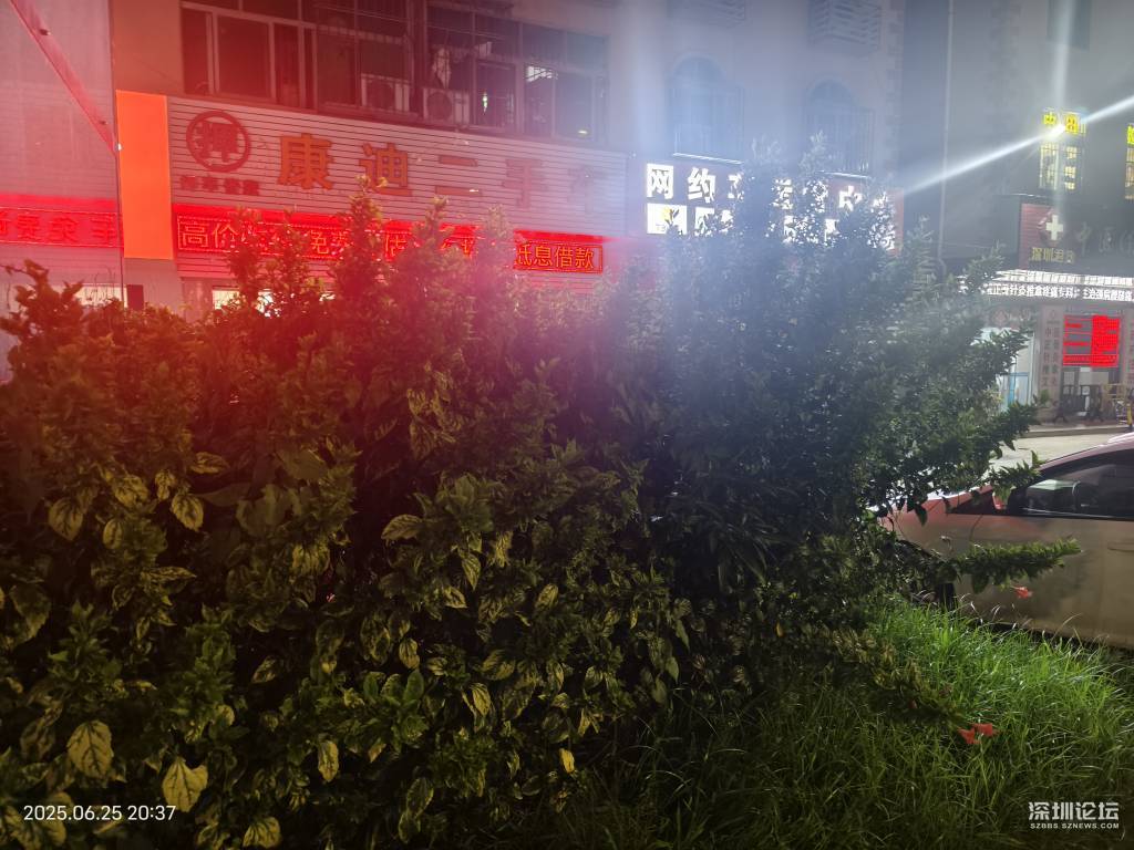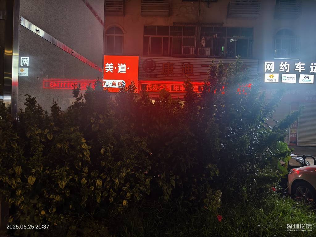 松岗街道6号线松岗公园C出口升降机旁,绿化花草生长得太高了,把前面的商店都挡住,希望有关单位定时修剪,美化环境蚊虫都会少点,,谢谢!